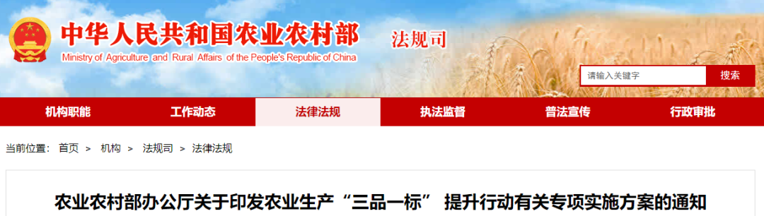 农业农村部印发《农业生产“三品一标”提升行动有关专项实施方案》(以下简称《方案》),系统部署了种植业、畜牧业、渔业,以及农业品种培优、农业品牌打造、农业标准化生产等分行业分领域的农业生产“三品一标”工作。